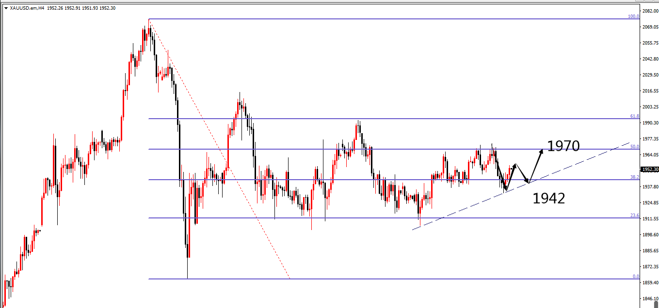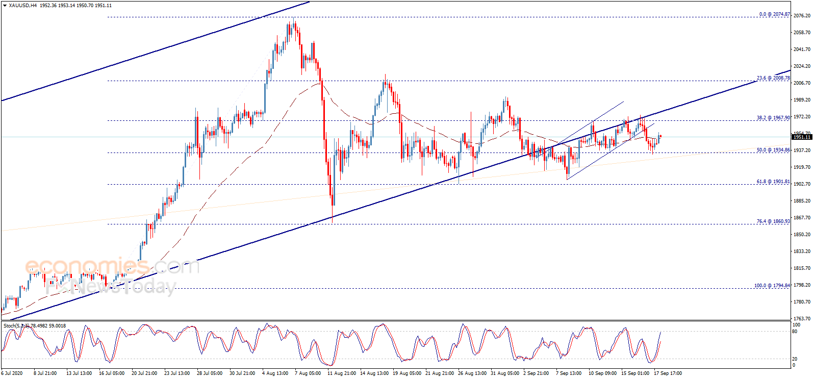 周五(9月18日)亚市盘中,现货黄金维持升势,金价现报1954美元/盎司附近。知名财经资讯网站cooi.co周五最新撰文,对日内黄金走势进行前瞻分析。 cooi.co在文章中写道,金价此前一度测试1934.86美元/盎司,然后自这一水平反弹,这令我们对未来一段时间金价走势维持看涨观点。从4小时图来看,金价突破