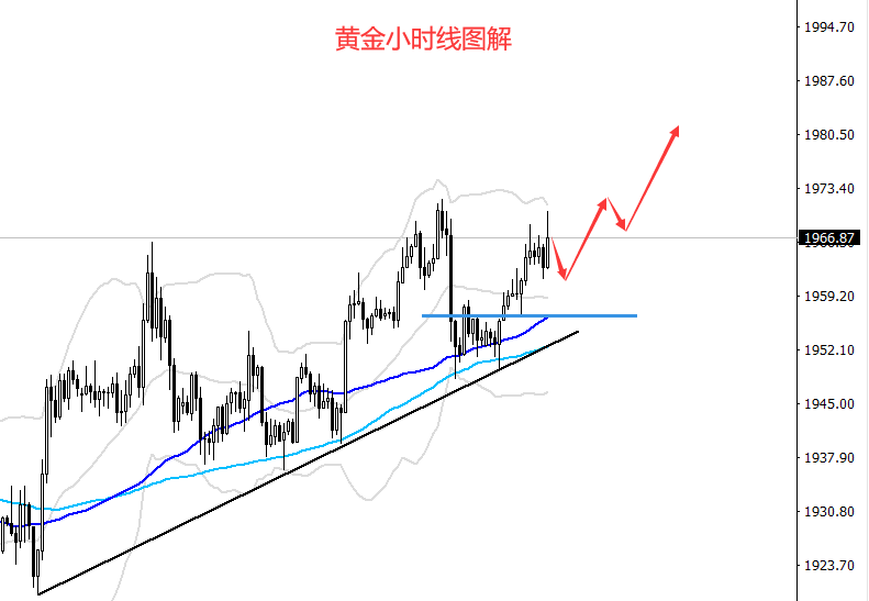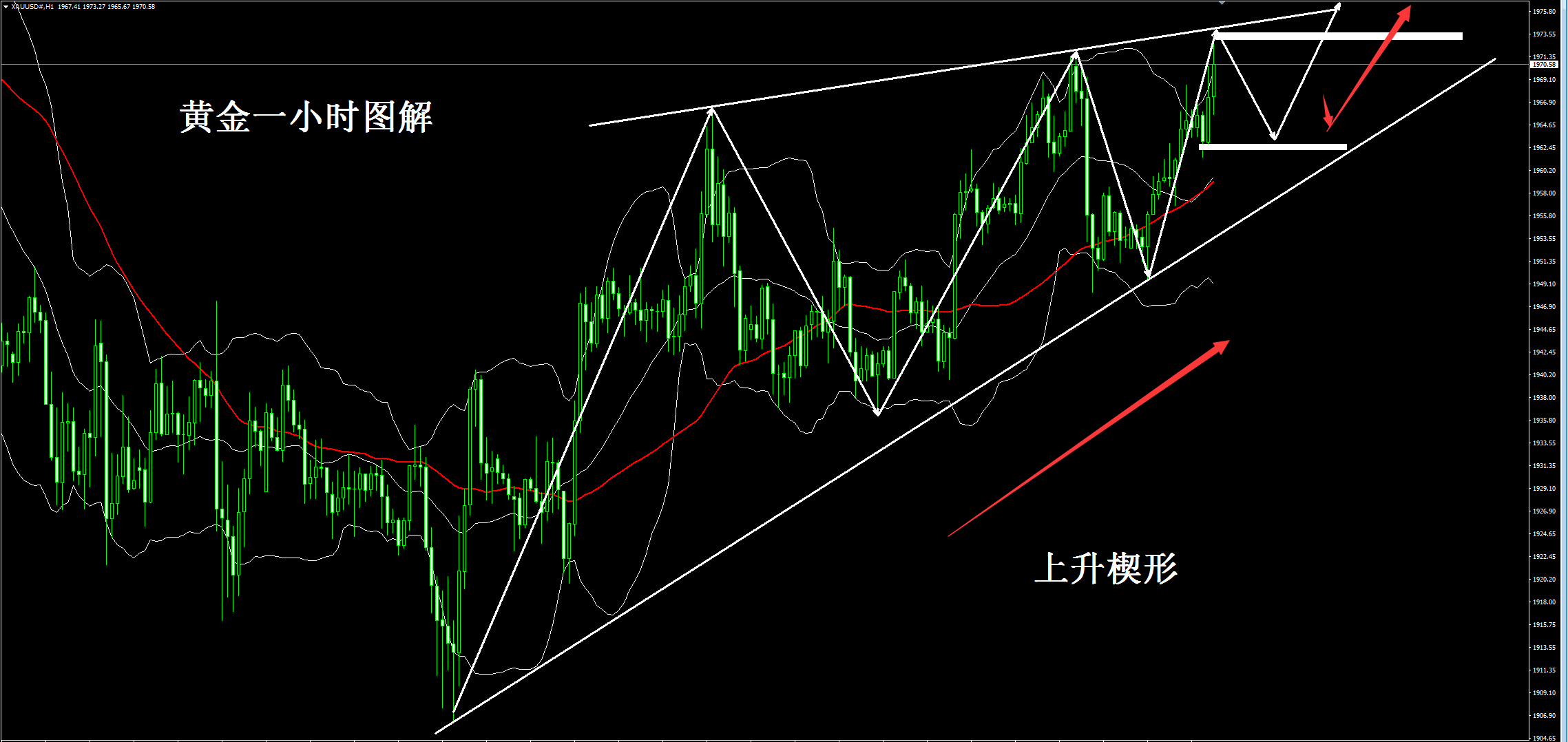 受美联储加息概率为零预期影响,现货黄金自早盘探底回升不断拉升不断逼空,现报1970。 在上一篇博客中,老师就强调,午盘这一波拉升是逼空上涨走势。什么叫逼空?就是逼死空头。在这种走势中,指标是钝化的,是失灵的,所以不要去猜顶,截顶,你截不到,回落就是多,回落就是多进常所以,老师在博客和实盘通知1