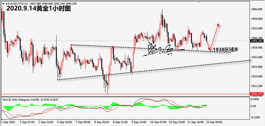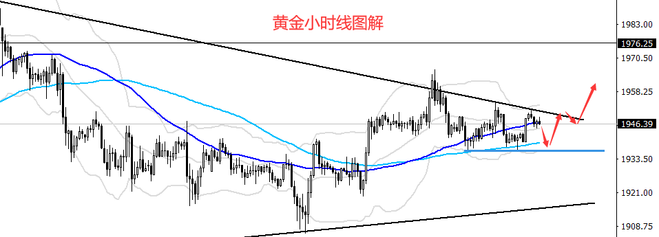 反弹遇阻,持稳高位,回撤无力,陷入震荡!今早盘金价低开后有所企稳,截止到目前触高至1951美元,短期内看似偏强,实际再涨的力度却不强,因此高位暂不做追多操作。 亚太地缘局势危机是支撑金价走高的有利因素,不过当前并未出现恶化迹象,对于金价后市再涨支撑作用不大。唯一能够指引或助推价格实现突破的或