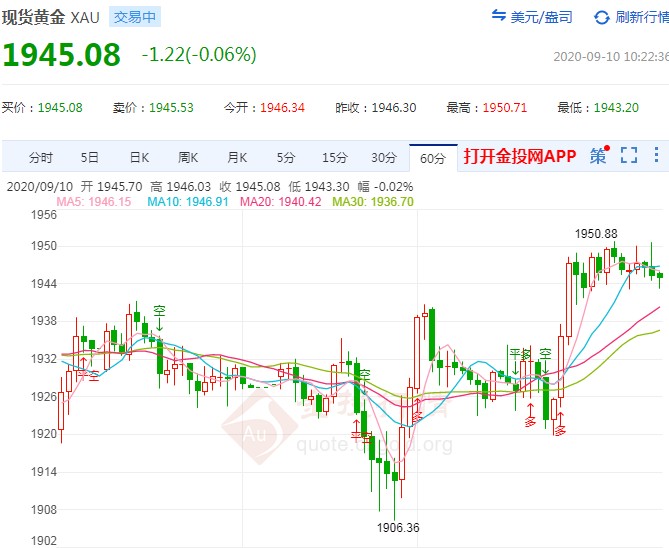 今日现货黄金价格走势最新查询(2020年9月10日) 今日现货黄金价格1945.44美元/盎司