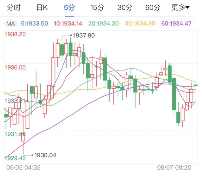 今日现货黄金价格走势(2020年9月7日) 今日现货黄金价格1936.60美元/盎司