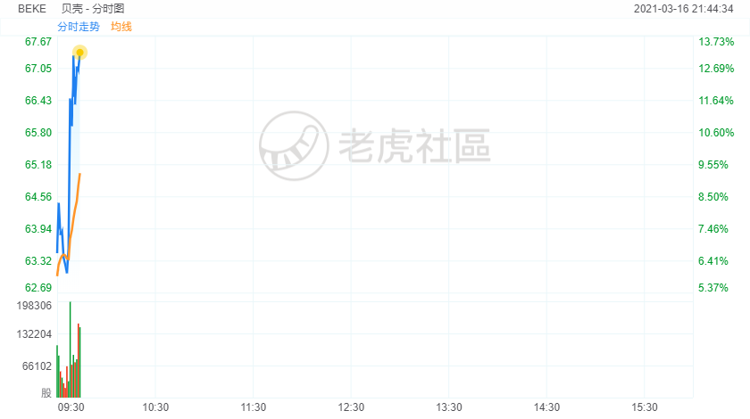 3月16日,贝壳盘初拉涨,现涨近13%,据公司年报显示,公司全年扭亏为盈,营收同比增长57.6%。