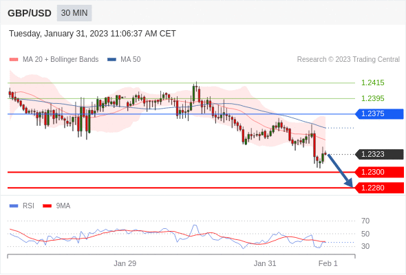 英镑/美元最新价报1.2354,开盘价为1.2349。除了疫情,英国经济仍遭受大规模罢工影响,这些都是令英镑承压下行的风险因素。 英镑/美元汇率今日分析:在1.2375之下,看跌,目标价位为1.2320,然后为1.2300。在1.2375上,看涨,目标价位定在1.2395,然后为1.2415。 技术点评:RI技术