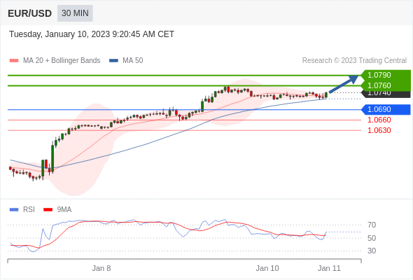 周二(1月10日)亚盘,欧元/美元高位回落,目前交投于1.0746附近,截止发文,欧元对美元报价1.0746,涨幅0.04%,上一个交易日欧元/美元汇率最低价报1.0634,收盘价报1.0730。渣打银行外汇策略师tvgladr表示,欧元兑美元汇率目前仍与去年12月底的水平相差不远,但最近美国和欧元区的经济数据显示,欧元应该