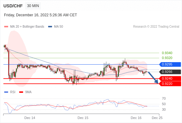 周五(12月16日)盘中,美元/瑞郎暂报0.9270,跌0.0015,跌幅00.16%。 美元/瑞郎汇率今日分析:在0.9295之下,看跌,目标价位为0.9240,然后为0.9220。在0.9295上,看涨,目标价位定在0.9320,然后为0.9340。 技术点评:只要依旧存在0.9295阻力位,价格波动存在看跌的趋势。
