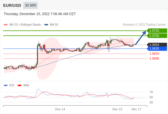 周四(12月15日)亚盘,欧元/美元低位回升,暂报1.0625,跌幅0.51%。丹斯克银行预计,欧洲央行将加息50个基点,并将在明年第一季度继续加息。 欧洲央行最新动态一览: 预计存款利率将达到2.75%的峰值,但仍存在进一步加息的风险。并预计,欧洲央行将发出鹰派言论。具体表现为,欧洲央行将提