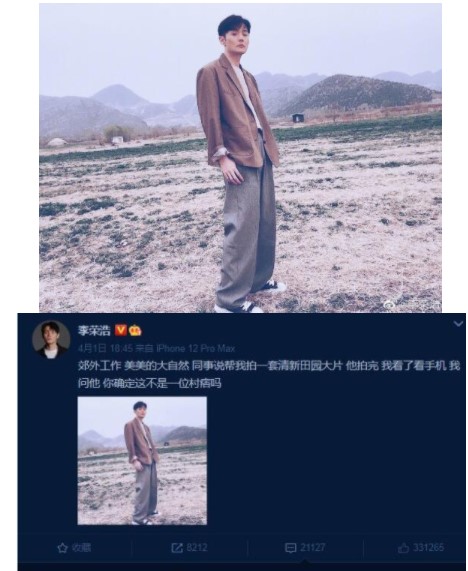 近日,歌手李荣浩在微博公开了一张全新的照片,这是同事给他拍摄的“清新田园大片”,对此李荣浩自己吐槽表示像“村痞”,虽然李荣浩自己认为还有点欠缺,但是他的迷弟龚俊却表示非常有气质。 李荣浩晒出了自己的全新“田园风光大片”之后,网友们纷纷表示很帅气。而他本人却吐槽称像“村痞”。他配文表示:“