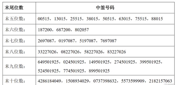震安转债(123103)披露向不特定对象发行可转换公司债券网上中签结果,具体如下: 末尾位数中签号码 末五位数47245,97245 末七位数4729844,0729844,2729844,6729844,8729844,0437636 末八位数09864878,59864878,66327309 末九位数444850733,044850733,244850733,644850733,8