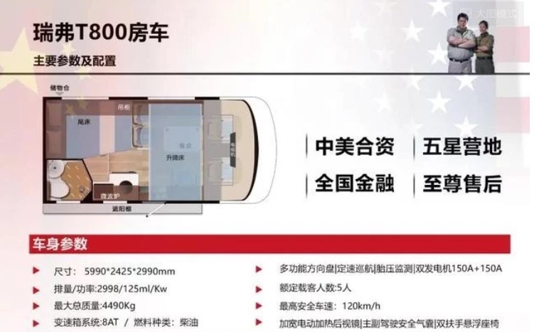 中美两国的房车产品各有特点,各有优势。中式房车更为适合国人的生活习惯,美式房车的技术更为成熟。今天就带您看一款由瑞弗房车与北美特种车制造商“RV”联手打造,结两家之精髓的打造的精品房车——瑞弗T800小额头房车。 先来看外观,外饰设计秉承着瑞弗一直以来的设计风格和理念。全车车长5990,车宽2425