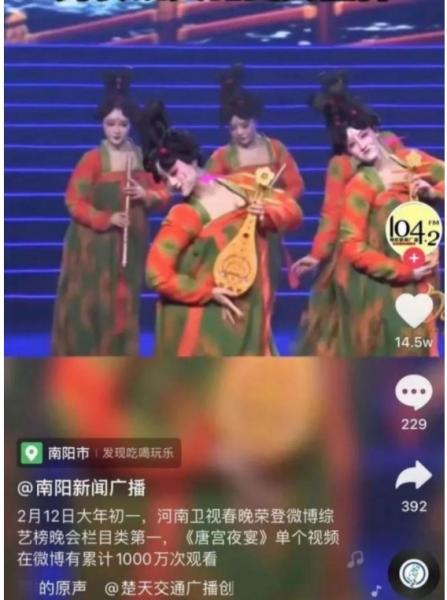 “感谢各界对中央广播电视总台央视文艺节目的关心和鼓励。我们注意到近期地方台有关节目与我们几年前播出的节目‘撞脸’等情况。 我们愿意重申,鼓励文艺节目在借鉴交流中创新。当然,这与抄袭模仿行为是有本质区别的。 另外,央视文艺播出的节目(包括舞台布景等)均受版权等保护。特此声明。”