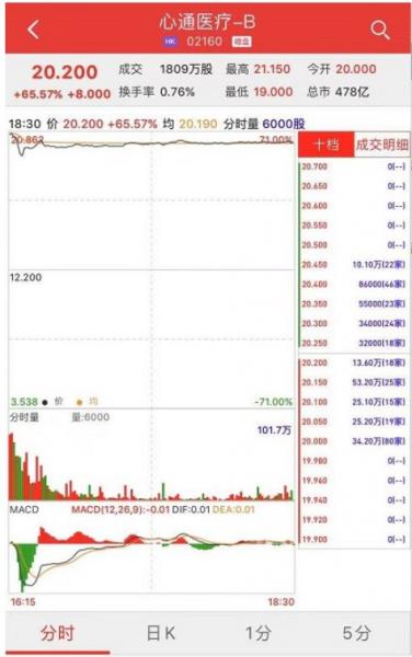 心通医疗-(02160)将于2月4日(星期四)在香港挂牌。截至暗盘收盘,利弗莫尔证券暗盘交易显示报价20.2港元,较招股价12.2港元涨65.57%。每手1000股,不计手续费,每手赚8000港元。