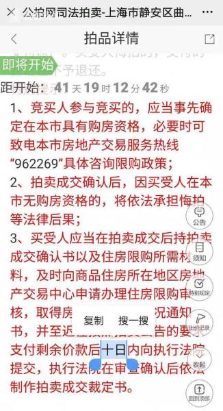 今天,记者从上海市房管局获悉,继1月21日晚楼市调控新政“沪十条”后,上海楼市调控组合拳相继落地,法拍房纳入限购。 记者在公拍网司法拍卖页面看到,竞买人参与竞买的,应当事先确定在本市具有购房资格,也就是单身限购一套,家庭限购二套。拍卖成交确认后,因买受人在本市无购房资格的,将依法承担悔拍等法