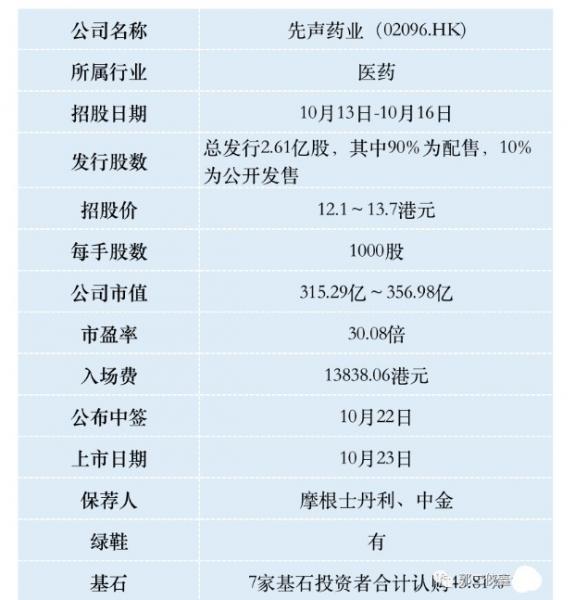 先声药业(02096)已经成立19年,其实,这次赴港上市并非先声药业的第一次上市。 早在2007年,先声药业就曾在纽交所上市。凭借2.26亿美元募资、超10亿美元市值,一举刷新亚洲化学生物药企的IO纪录。后于2013年完成私有化并从美股退市。 一、招股信息 二、公司基本面 先声药业是一家从