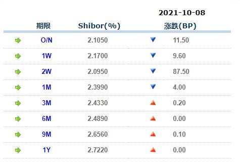 10月8日香港银行间同业拆借利率港币: 隔夜报0.03665%, 1周期报0.04063%, 1月期报0.06344%, 12月期报0.32500%。 香港银行同业拆放利率HIOR(HogkogItrakOffrdRat),指香港货币市场上,银行与银行之间的一年期以下的短期资金借贷利率,是从伦敦同业拆借利率(LIOR)