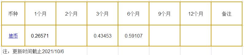10月6日新加坡银行间同业拆借利率坡币: 1月期报0.26571%, 3月期报0.43453%, 6月期报0.59107%。
