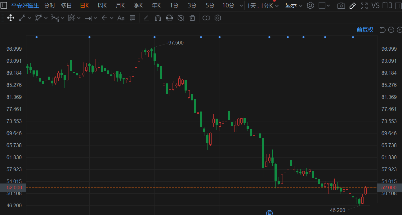 平安好医生(01833.HK)高开高走,现涨超6%,2日反弹超10%。现报52港元,总市值597亿港元。 在9月底公司获合生创展集团增持160万股,涉资约8329.3万港元,持股比例上升至9.02%。浙商国际表示,鉴于当前公司基本面持续向好,加之估值水平处于历史低位,继续维持平安好医生的“买入”评级。据悉,今年上半年