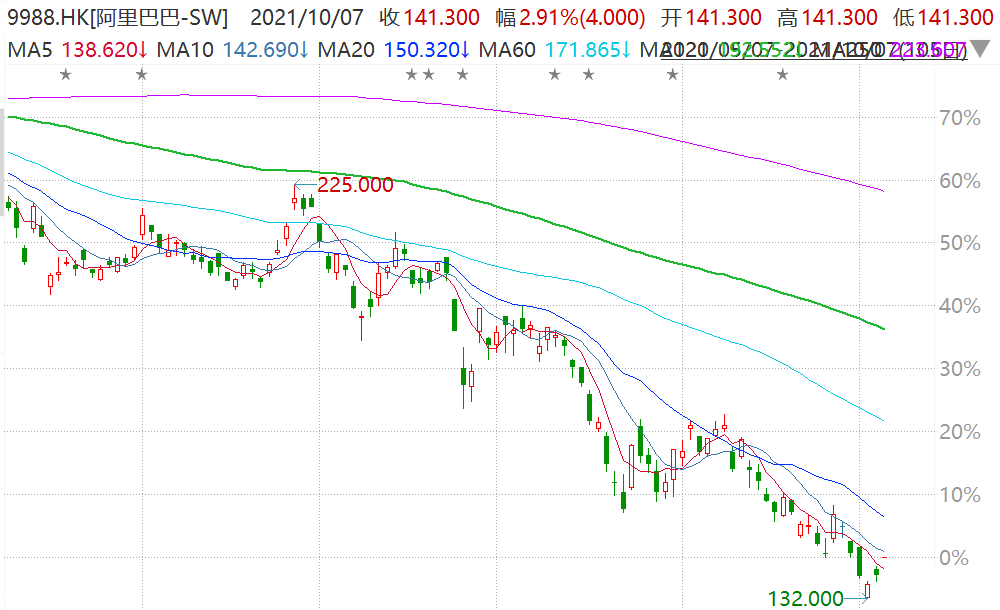 阿里巴巴(9988.HK)高开2.91%报141.3港元,市值3.06万亿港元。 阿里巴巴美股迎来芒格的大举增持。近日,据查理·芒格旗下公司DailyJouralCororatio公布的第三季度13-F文件,自7月份以来,阿里巴巴股价下跌了近50%之后,DailyJoural将阿里巴巴的持仓数量增加了82%。而今年一季度,该公司刚刚建仓阿里