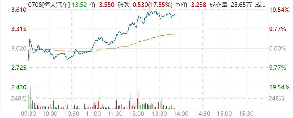 恒大系股票中,中国恒大和恒大物业停牌,恒大汽车和恒腾网络正常交易,上午已由跌转升,午后涨幅进一步扩大。恒大汽车一度涨近20%,恒腾网络一度涨超8%。上午有媒体称,合生创展拟收购恒大物业约51%股份,获恒大物业控股权,合生创展给恒大物业估值超400亿港元。 午间,中国恒大称有待公司刊发一份待披