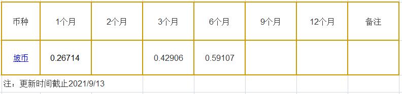 9月13日新加坡银行间同业拆借利率坡币: 1月期报0.26714%, 3月期报0.42906%, 6月期报0.59107%。
