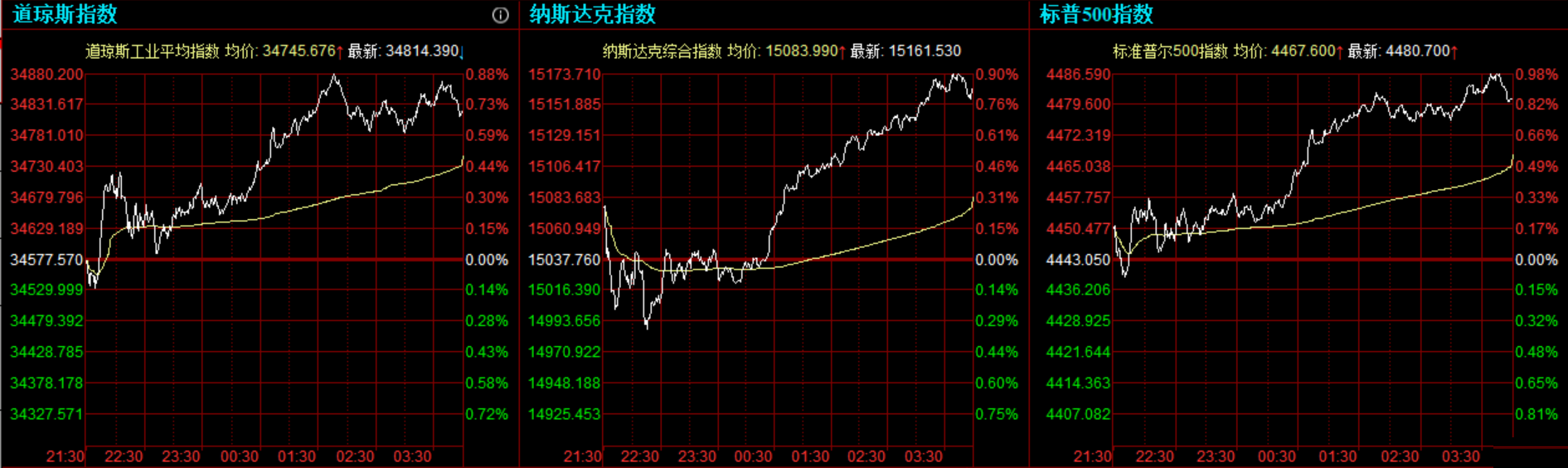 美股三大指数集体收涨,标普500指数结束日线六连阴。衡量地区制造业表现的9月纽约联储帝国指数为34.3,远高于市场平均预期的18,并高于8月读数。美联储周三公布的数据显示,美国8月制造业产出增长0.2%,低于市场预期。 道指收涨236.82点,或0.68%,报34814.39点;纳指涨123.77点,或0.82%,报15161.53点
