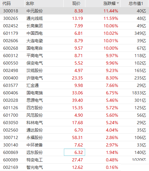 特高压板块大幅拉升,长高集团、中国西电、保变电气、国电南自等多只个股涨停,中元股份、通光线缆均大涨超11%,汉缆股份、许继电气、国电南瑞等纷纷大幅走高。 青海省能源局近日委托招标代理机构对青海至河南直流特高压输电通道可再生能源基地二期电源项目通过公开招标方式选择投资主体,累计招标项目
