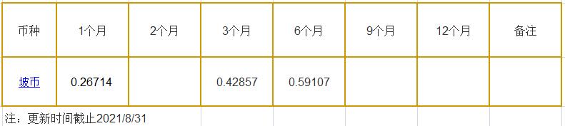 8月31日新加坡银行间同业拆借利率坡币: 1月期报0.26714%, 3月期报0.42857%, 6月期报0.59107%。