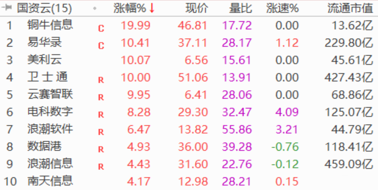 国资云概念股大涨,铜牛信息、美利云、云赛智联、卫士通涨停。网传天津市国资委下发了一份名为《关于加快推进国企上云工作完善国资云体系建设的实施方案》的文件,要求国资企业逐步向国资云平台迁移。