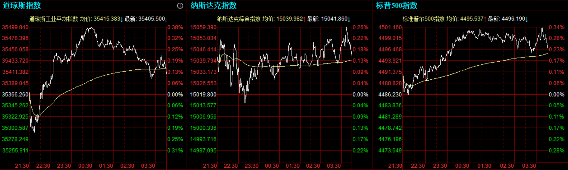 美股三大指数小幅收涨,标普500指数与纳指均已录得连续第五个交易日上涨。备受期待的杰克逊霍尔研讨会将于周四开幕,届时美联储官员可能会透露有关缩减货币刺激计划的最新消息,主席鲍威尔定于周五发表讲话。 道指收涨39.24点,或0.11%,报35405.5点;纳指涨22.06点,或0.15%,报15041.86点;标普500指