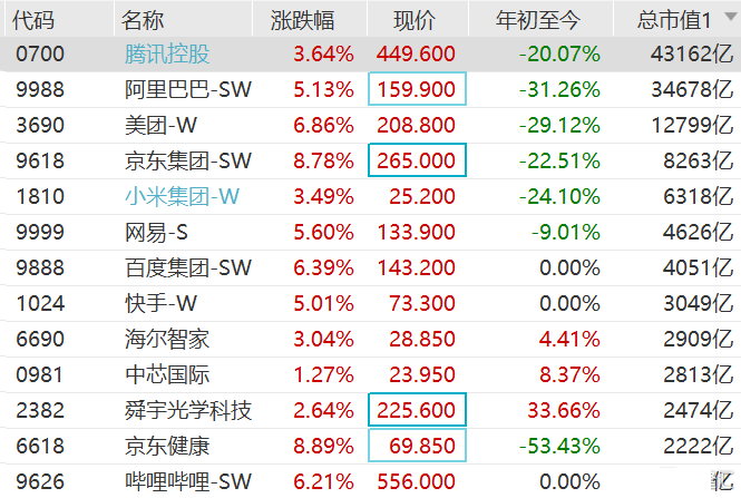 隔夜中概股的连续第二日集体反弹,带动今早港股市场科技股集体走强,恒生科技指数盘初拉升涨4%。个股方面,腾讯涨3.6%,阿里涨超5%,美团涨近7%,京东集团涨超8%,网易、快手涨超5%,哔哩哔哩涨超6%。腾讯已连续三日进行回购操作。