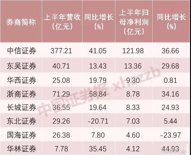 截至8月20日,A股上市券商中已有8家完成了2021年半年报披露工作。值得注意的是,“券商一哥”中信证券不仅在营收及净利润规模上与中小券商进一步拉开差距,其增速也明显高于后者,优势地位进一步突出。 根据中信证券半年报,上半年公司实现营业收入377.21亿元,实现归母净利润121.98亿元,增速分别达到41.05%、