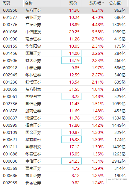 券商板块拉升走高,东方证券涨超6%,兴业证券、广发证券涨超4%,中信建投涨超3%,南京证券、华创安阳、国联证券、东方财富等纷纷跟涨。截至昨日收盘,沪深两市成交额已连续20个交易日突破万亿,创历史第二长的万亿成交记录,仅次于2015年。国泰君安发布研报称,当前A股市场蓄势待发,券商板块行情开始发酵。在市场层