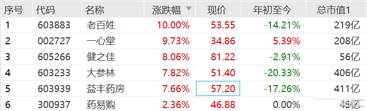 A股药品零售股集体走强,在老百姓封死涨停板的刺激下,一心堂拉升触及涨停,健之佳涨超8%,益丰药房、大参林涨超7%。 老百姓昨晚公布的业绩显示,Q2营收38.23亿元,同比增12.28%,归母净利润1.78亿元,同比增27.46%;扣非净利润1.72亿元,同比增24.94%。值得注意的是,公司上半年线上渠道销售额达3亿元
