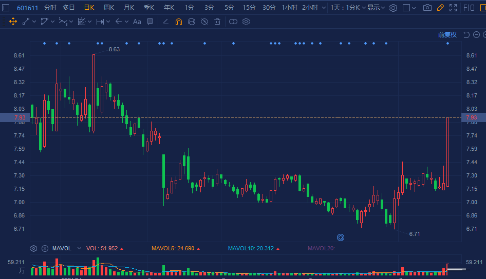 中国核建(601611.H)强势拉升至涨停板,报7.93元,成交额超4亿元,总市值210亿元。 中国核建17日公告,2021年7月新签合同额728.32亿元,同比增长20.6%。其中,公司子公司与相关方签署了徐大堡核电3/4号机组核岛土建工程施工合同。截至2021年7月,公司累计实现营业收入481.07亿元。