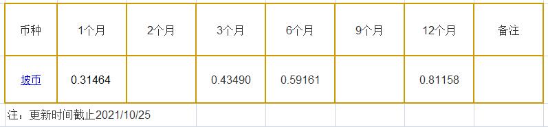 10月25日新加坡银行间同业拆借利率坡币: 1月期报0.31464%, 3月期报0.43490%, 6月期报0.59161%。 12月期报0.81158%。