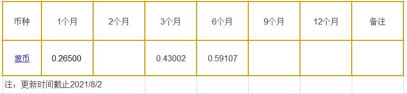 8月2日新加坡银行间同业拆借利率坡币: 1月期报0.26500%, 3月期报0.43002%, 6月期报0.59107%。