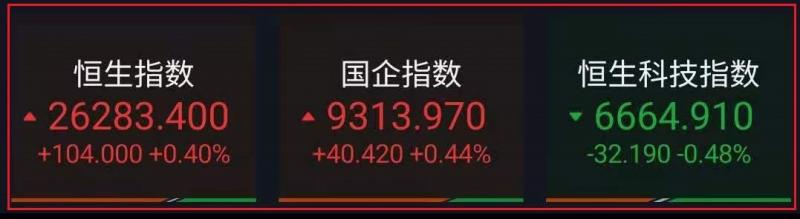 昨日回顾: 1.恒指昨早市先低开210点至25969点,其后再稍跌至25920点方渐见喘定并回升。在腾讯(700)及美团点评(3690)反弹带动下,市势缓步回升,午盘后涨幅收窄。截至收盘,恒指涨0.40%,报26283.40点,国企指数涨0.44%,红筹指数跌0.48%; 2.恒大系”午后走高,恒大物业(5.560.499.67%)涨9.66%,