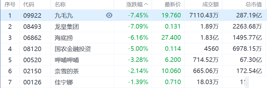 餐饮股下挫,九毛九大跌7.45%,海底捞跌逾6%。 昨日,国务院联防联控机制召开新闻发布会,国家卫生健康委疾控局副局长吴良有在会上表示,自10月17日多地关联聚集性疫情发生以来,截至10月23日24时,累计报告133例感染者。国家卫健委新闻发言人米锋在会上表示,当前,国外疫情持续蔓延,季节因素叠加,容