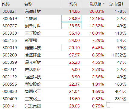 有机硅板块大幅走高,东岳硅材、三孚股份拉升涨停,金银河、润禾材料双双大涨超10%,合盛硅业、硅宝科技等纷纷走强。生意社数据显示,21日,主流地区有机硅DC均价30633元/吨,较14日上调67元/吨,自年初以来累计涨幅约40%。据中信证券测算,2025年我国有机硅在电子电器领域的市场将达到150亿元,年复合增长率为11.6%