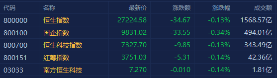 港股三大指数再度下跌,恒指录得3连跌,盘中一度大跌超1%下破27000点大关。截至收盘,恒指跌0.13%报27224点,国指跌0.34%报9831点,恒生科技指数跌0.13%报7327点。 盘面上,汽车股在弱势中表现最为强势,长城汽车绩后飙升超16%,比亚迪股份升超6%;连续下跌的教育股反弹明显,碳中和概念股、医美股、有