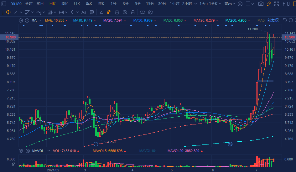 东岳集团(0189.HK)大幅拉升超13%,报10.9港元有望再创历史新高价,大幅成交7.83亿港元,总市值超231亿港元。 该股自6月底以来持续拉升上扬,截至目前累计涨幅达105%。公司上月发布的公告披露,东岳集团今年前5个月的净利润同比增幅超过五成。另据公司董事会预测,今年上半年公司净利润有望取得大幅增长