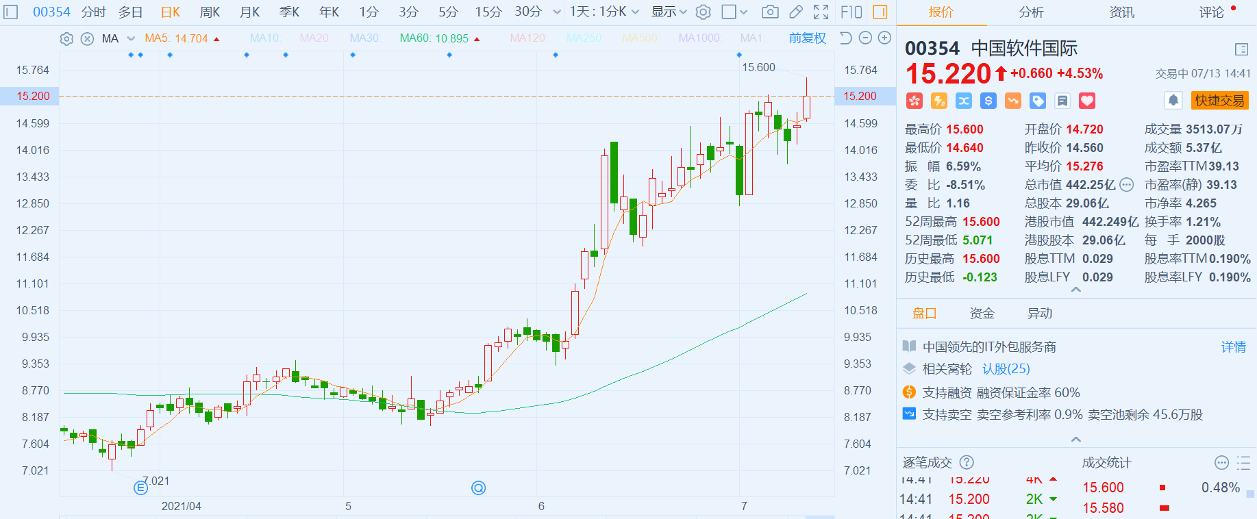 中国软件国际(0354.HK)涨4.53%,报15.22港元,高见15.6港元创历史新高,总市值442亿港元。 华为HaroyO开发者官方公众号在昨日宣布,HaroyO应用服务伙伴峰会在今日开启报名,将于7月30日在杭州举办。华为HaroyO应用服务伙伴峰会的将包含以下内容:HaroyO2最新进展、HaroyO2最新生态案例解