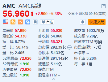 AC院线(AC.U)股价快速拉升,现报56.96美元,涨幅5.36%。 消息称,超过200万美国观众刷新了重新开放后的周末票房纪录,并创下自2019年以来美国电影首映票房最高的纪录。