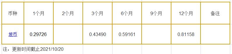 10月20日新加坡银行间同业拆借利率坡币: 1月期报0.29726%, 3月期报0.43490%, 6月期报0.59161%。 12月期报0.81158%。