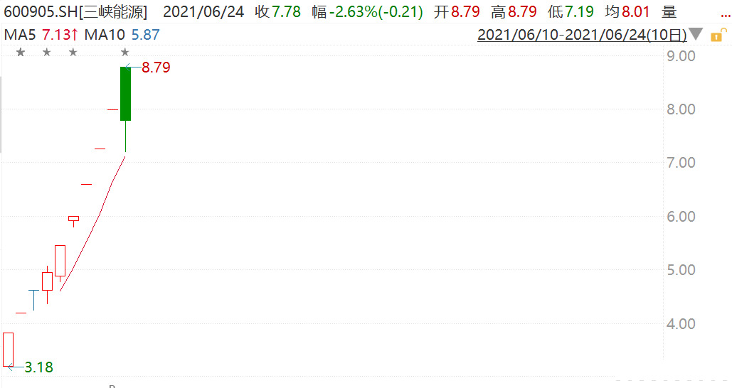 次新股三峡能源(600905.H)上午盘中一度上演天地板,股价一度从涨停价8.79元跳水跌至跌停板7.19元。截至半日收盘跌2.63%报7.78元,成交额放大至210亿元,位居A股成交榜第一位,最新市值2223亿元。 三峡能源主营风能、太阳能的开发和运营等业务,自6月10日首日上市起连续三日涨停,第四个交易日开板,但