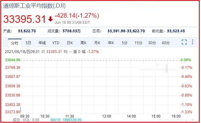 美股三大指数集体低开,道指跌1.09%,纳指跌0.45%,标普500指数跌0.78%。