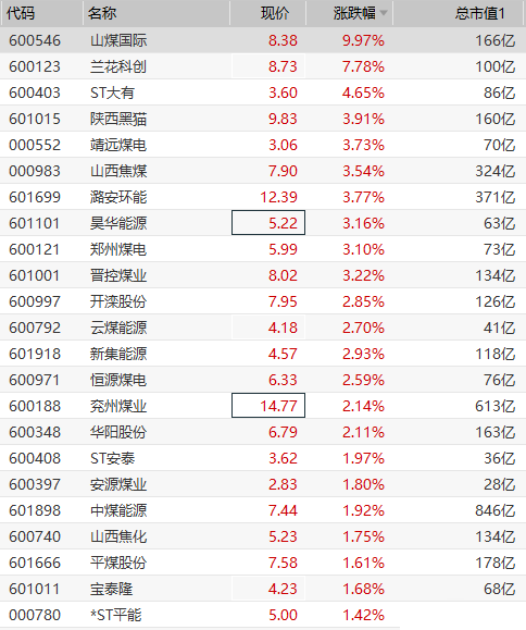 煤炭板块拉升走强,山煤国际拉升封板,兰花科创涨超7%,陕西黑猫、山西焦煤、潞安环能、昊华能源等跟涨。国家矿山安监局近日下发紧急通知,调派百名执法人员对山西、黑龙江、河南、贵州、云南、陕西、内蒙古、新疆及新疆生产建设兵团等9个重点产煤省开展异地联合监察执法。要全面排查防突体制机制,全面排查瓦斯参数