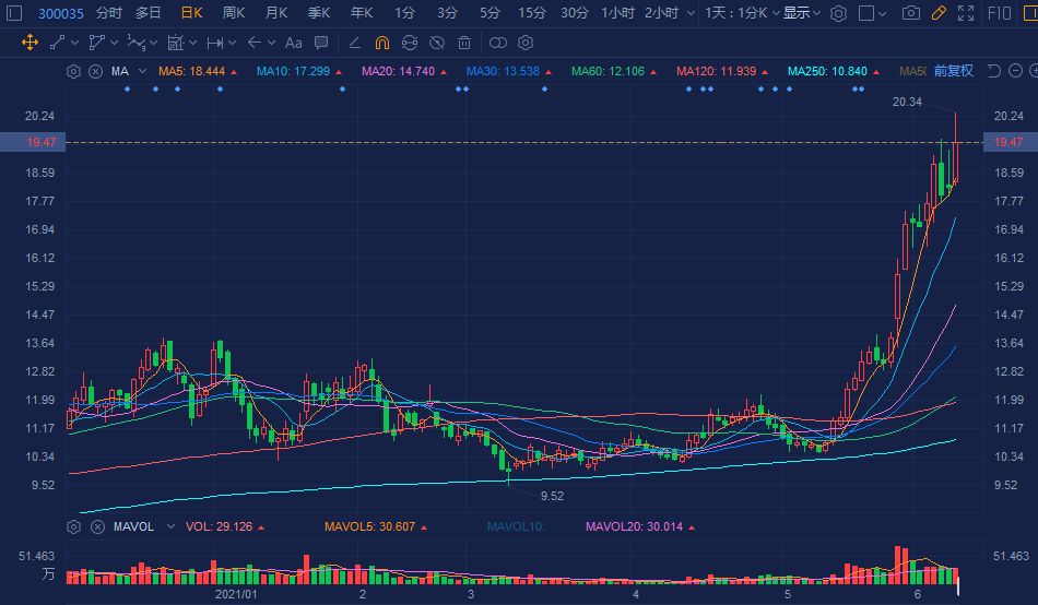 中科电气(300035.Z)盘中一度大涨逾12%,高见20.34元创历史新高价,近一个月股价翻倍,总市值达130亿元。 目前公司已经形成湖南、四川、贵州全国三大产能基地,负极材料板块已成为公司战略发展业务。华创证券预计2025年全球负极材料市场空间为457亿元,复合增长率为25.2%。预计三季度产能密集释放后公司