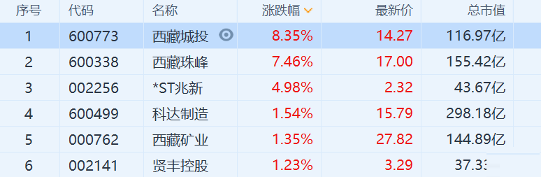 盐湖提锂概念股走强,西藏城投涨8.35%领涨,西藏珠峰涨7.46%紧随其后。近期《建设世界级盐湖产业基地规划及行动方案》评审会于5月20日在北京举行,该方案获专家委员会评审一致同意通过。业内人士表示,《建设世界级盐湖产业基地规划及行动方案》获评审通过,预计将推动本土盐湖提锂产业的开发进程。青海盐湖提锂打开