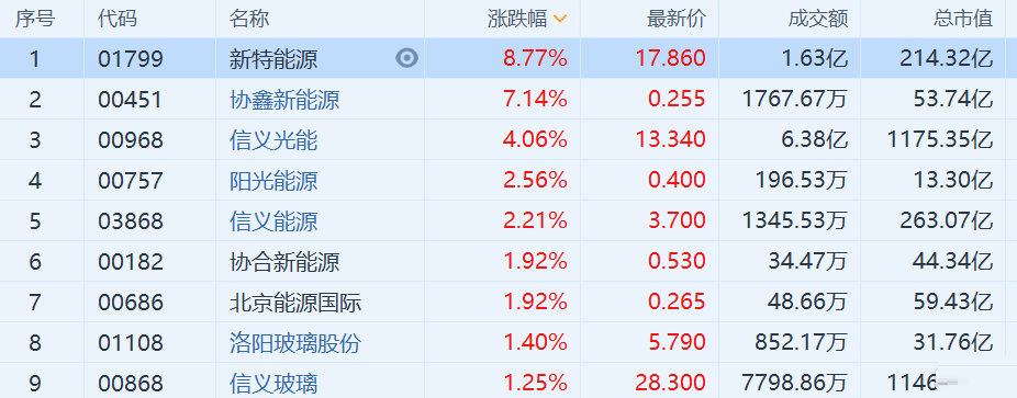 光伏股拉升,新特能源涨8.77%领涨,协鑫新能源涨超7%,信义光能涨逾4%。据光伏行业专业网站Ifolik,多晶硅(单晶用)截至本周三价格均价为每公斤25.3美元,按周涨15.5%,最高及最低分别为24.5和27美元,估计下周升幅会再涨逾3%。Ifolik称,海外价格因短缺氛围浓厚,加上海外料价较高,贸易商价格涨幅快速,成交价飙