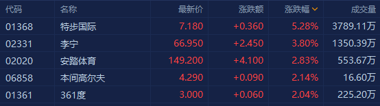 体育用品股全线拉升上扬,特步国际涨超5%为最佳,且股价再度逼近历史高价,李宁涨近4%,安踏涨近3%亦逼近历史高位。国际奥委会主席巴赫和日本首相菅义伟19日在不同的场合承诺,东京奥运会将会如期并且安全举行。招商证券(香港)相信,如果今年东京奥运会能够举行且中国国家队能参加,民族自豪感会进一步增强,而这将进